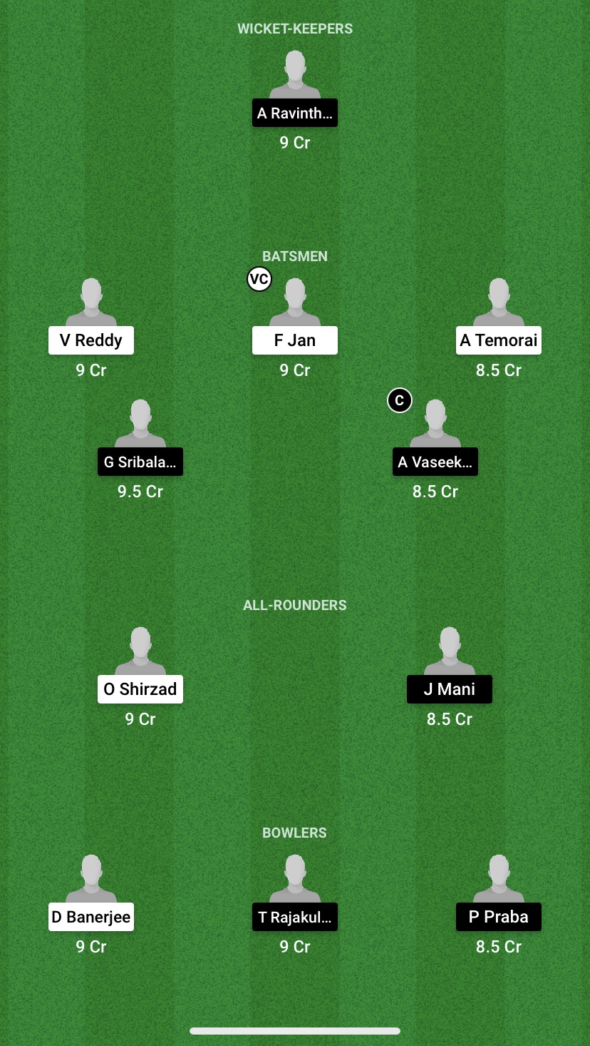 Bayer Uerdingen Boosters: Ahilan Ravinthran (wk), Kumar Mahendran (c), Sri Kanth Vaka, Ali Abbas Akbar, Thinesh Rajakulasingam, Aritharan Vaseekaran, Anvesh Jandagudem, Pakeetharan Praba, Gobinath Sribalashanmugan, Mani Janarthanam, Stebin Stephen
