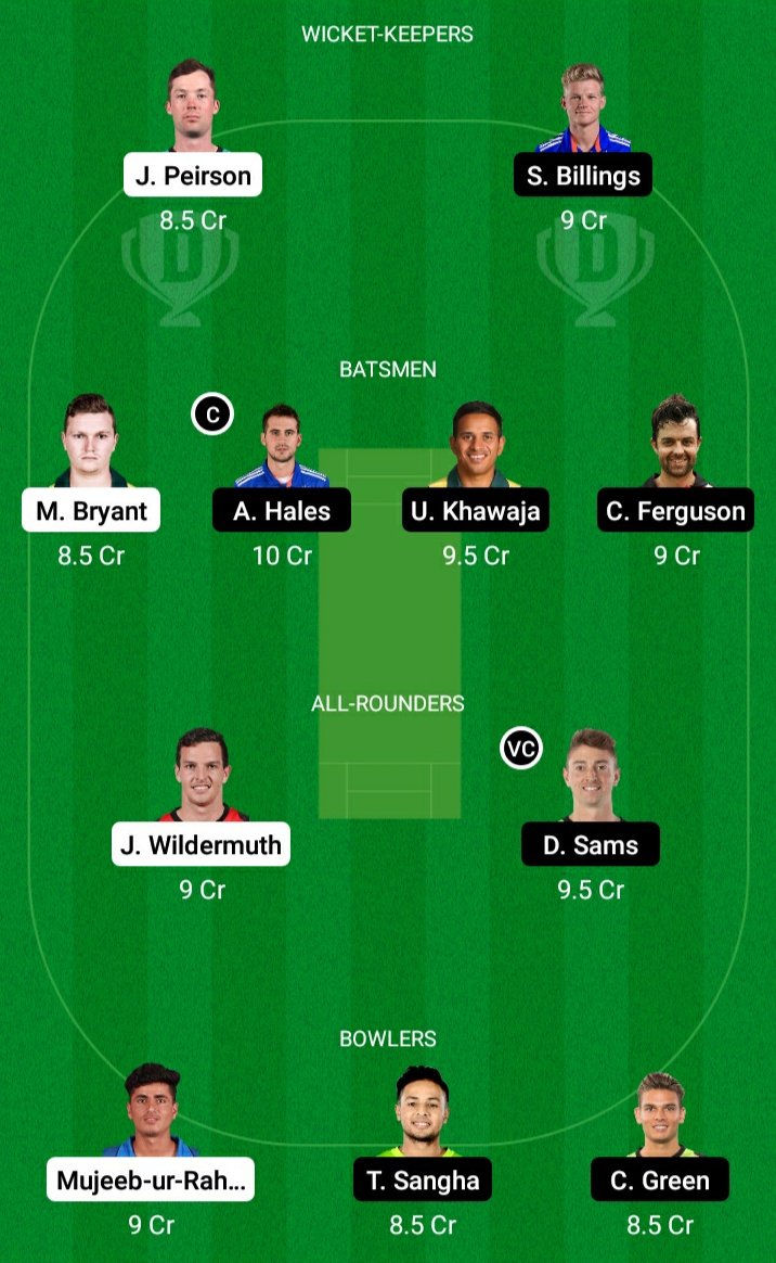 Usman Khawaja, Alex Hales, Callum Ferguson (C), Sam Billings (WK), Daniel Sams, Ollie Davies, Ben Cutting, Chris Green, Chris Tremain, Tanveer Sangha, Nathan McAndrew.