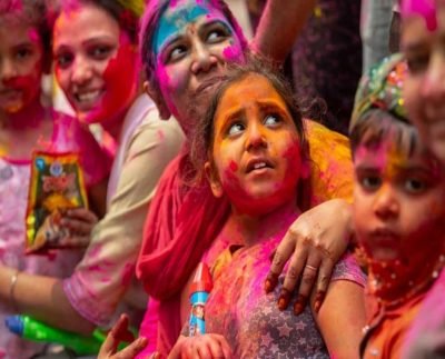 Revellers dance as they celebrate Holi, the spring festival of colours, in Allahabad on March 29, 2021. Mumbai: A girl…