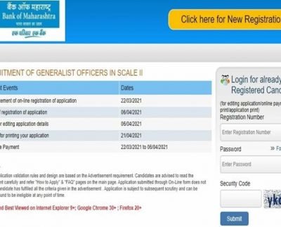 The Bank of Maharashtra on Monday, March 22, invited online applications for the recruitment of the General Officers on its…