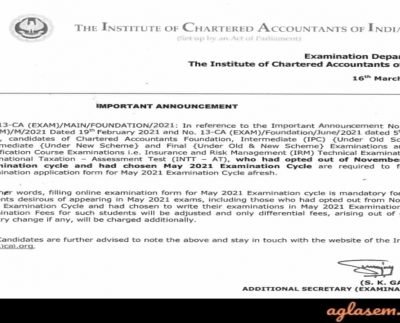 In an important announcement, Institute of Chartered Accountants of India (ICAI) on Tuesday, March 16, said that allstudents appearing in…