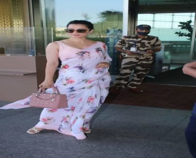 Kangana Ranaut braves Mumbai heat in floral saree, ₹3.8 lakh Dior bag