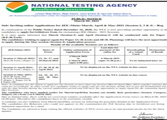 NTA extends JEE Main 2021 March application process