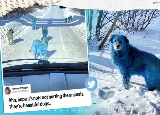 Smurfs or Avatar? : Pack of stray dogs with bright blue fur spotted in Russia