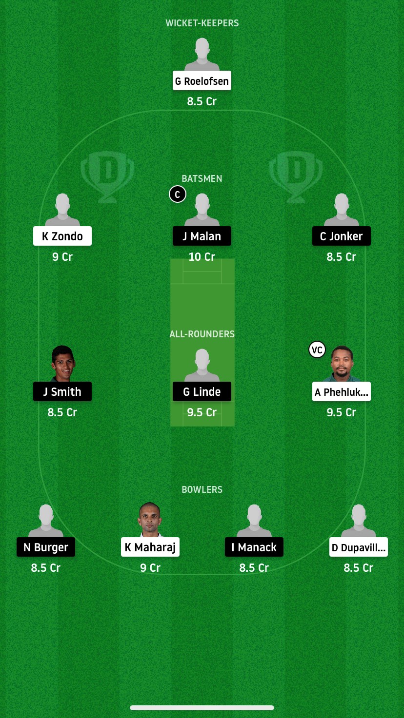 Janneman Malan, Tony de Zorzi, Kyle Verreynne, Zubair Hamza, Christiaan Jonker, Jason Smith, George Linde, Onke Nyaku, Imran Manack, Nandre Burger, Ziyaad Abrahams.