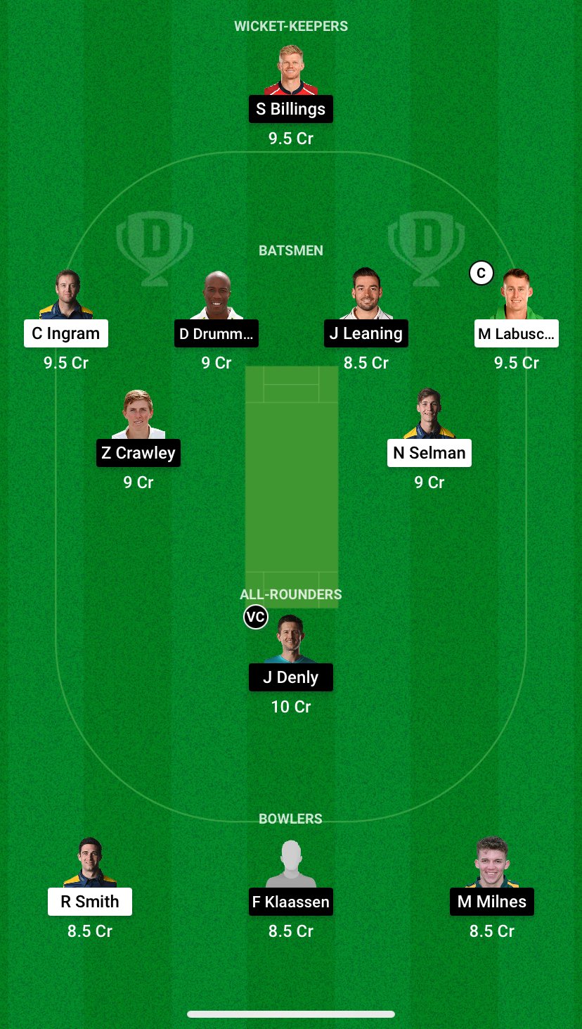 Daniel Bell-Drummond (C), Joe Denly, Sam Billings (WK), Zak Crawley, Jack Leaning, Jordan Cox, Darren Stevens, Grant Stewart, Qais Ahmad, Matt Milnes, Fred Klaassen.