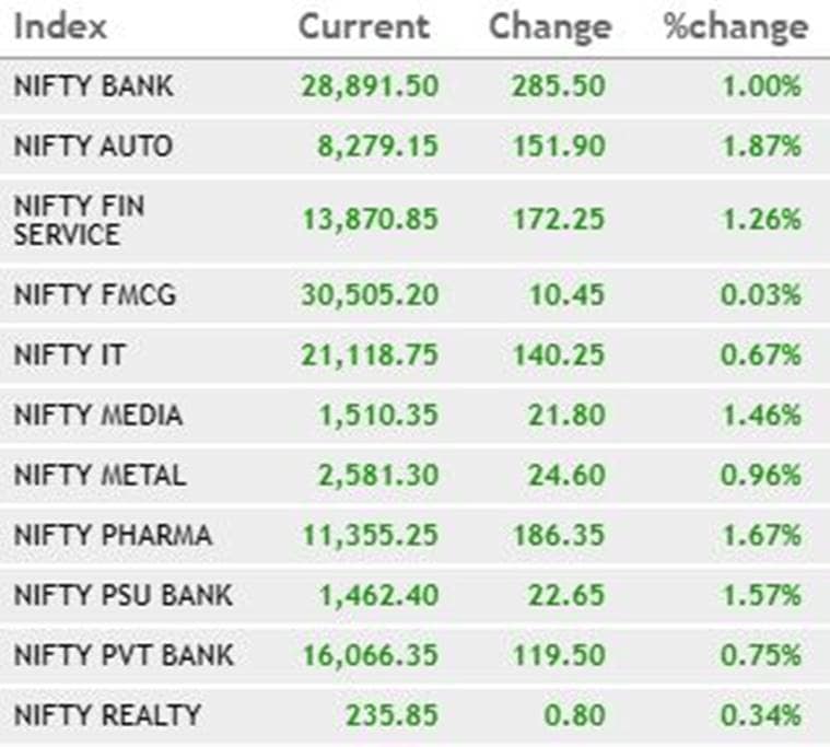 Among the sectoral indices, the Nifty Auto index was up nearly 2 per cent in early trade driven by Balkrishna Industries, Hero MotoCorp and M&M. Likewise, the Nifty Pharma index too was up over 1.5 per cent led by Aurobindo Pharma, Lupin and Cipla.