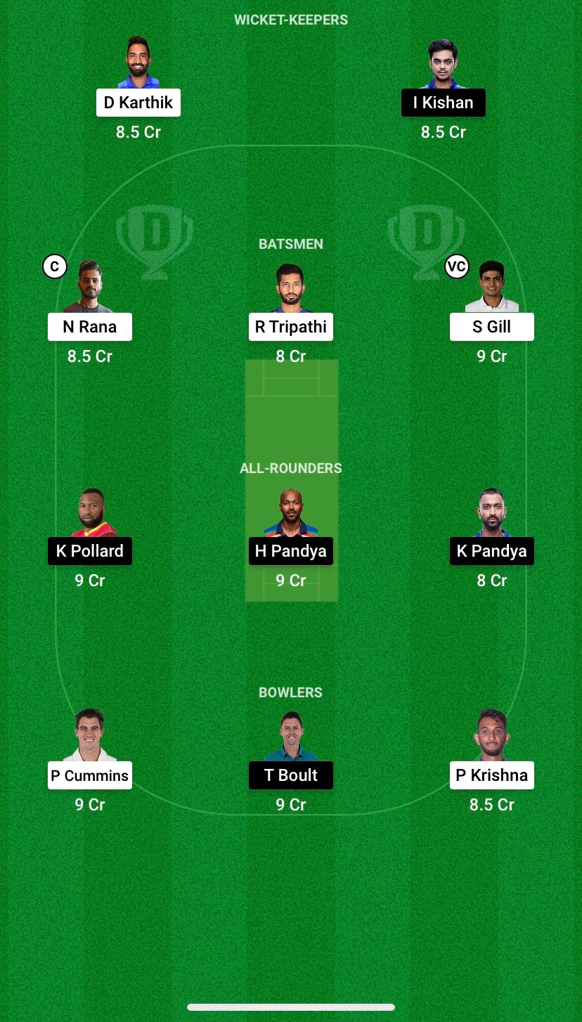 Kolkata Knight Riders VS Mumbai Indians (KKR VS MI) Dream 11 prediction