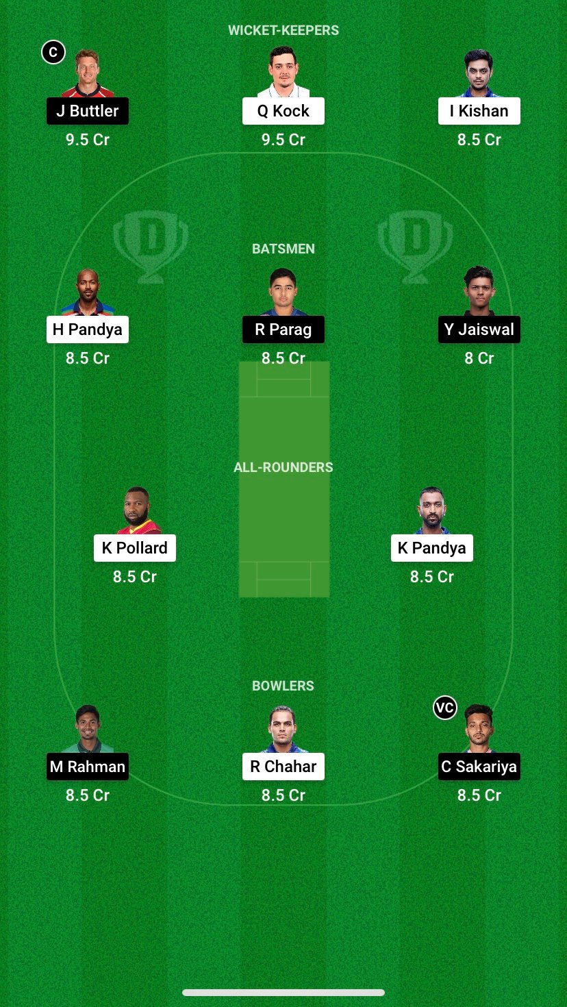 MI VS RR Dream11 Team