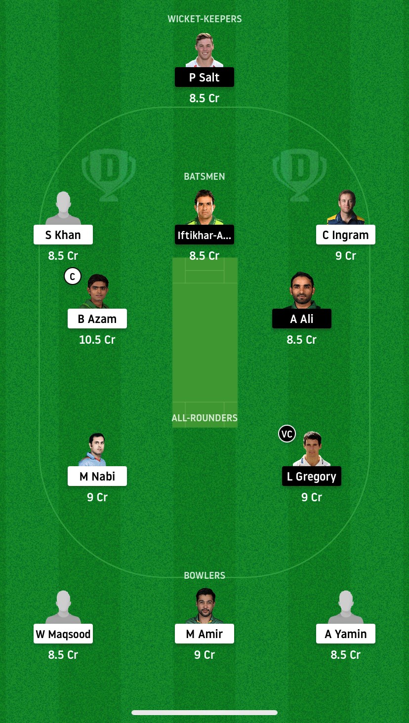 Batsman:Babar Azam, Sharjeel Khan, Colin Ingram, Asif Ali,Iftikhar Ahmed,