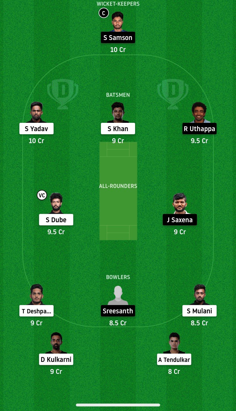 Bowler- Sreesanth, Basil Thampi,Tushar Deshpande, Dhawal Kulkarni.